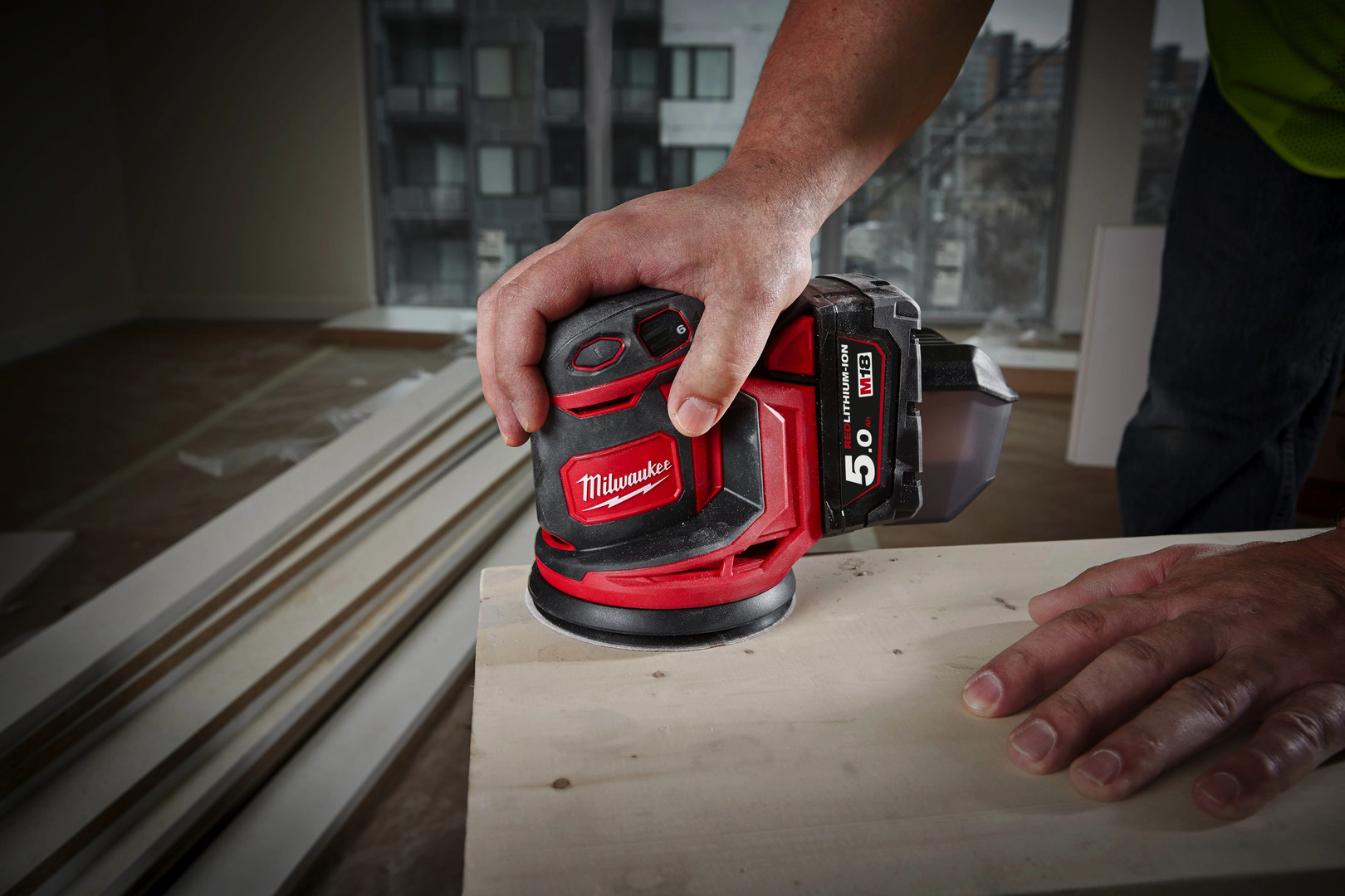 - 14.000–24.000 Schleifhübe durch den MILWAUKEE® Hochleistungsmotor führen zu einem verbesserten Materialabtrag