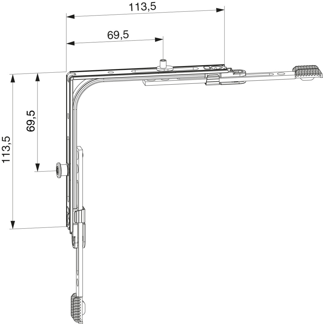 MM Eckumlenkung IQ für Spaltlüftung mit 1 i.S. FFB 320-1.800 FFH 360-2.800 silber