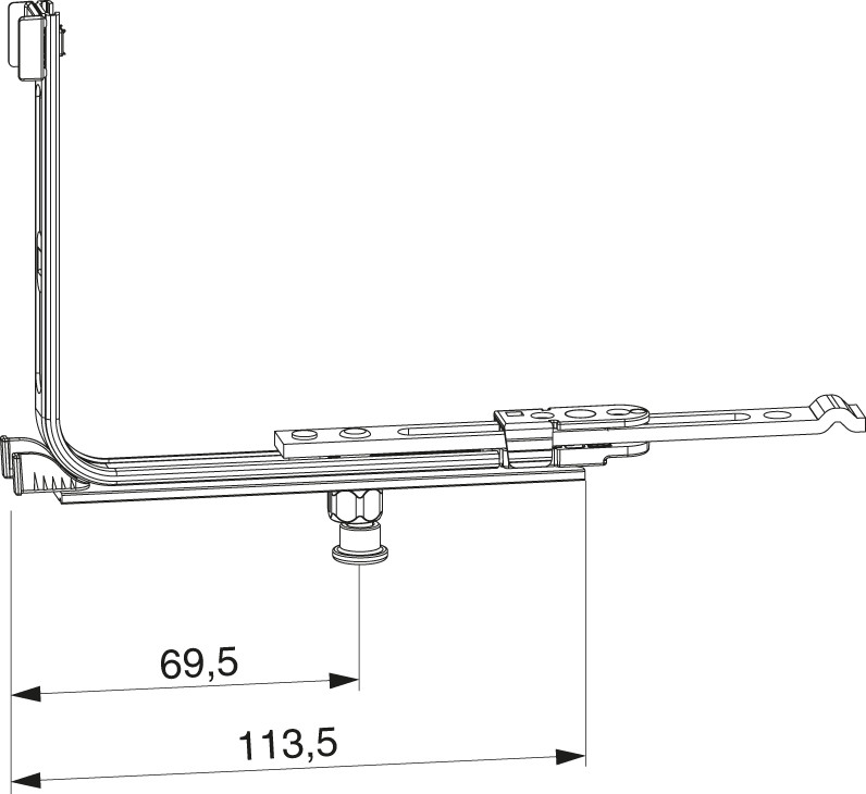 MM Eckumlenkung waagrecht für Bodenschwelle verlängerbar mit i.S. 14L FFB 260-1.800 silber