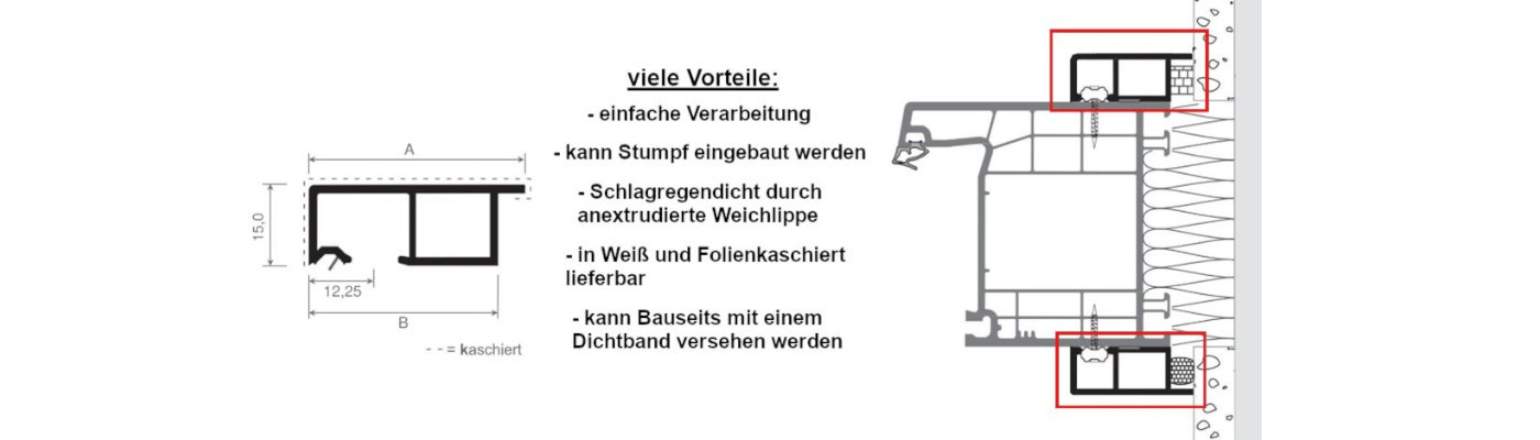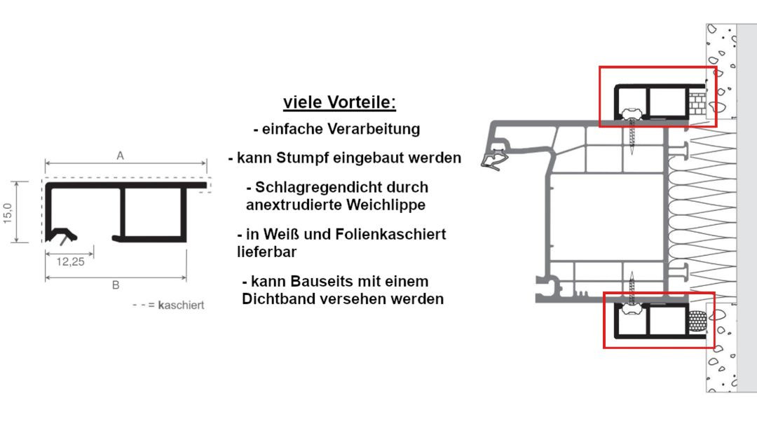 Alternativ bieten wir auch Anschlussprofile mit hochwertigen illbruck-Dichtbändern an.