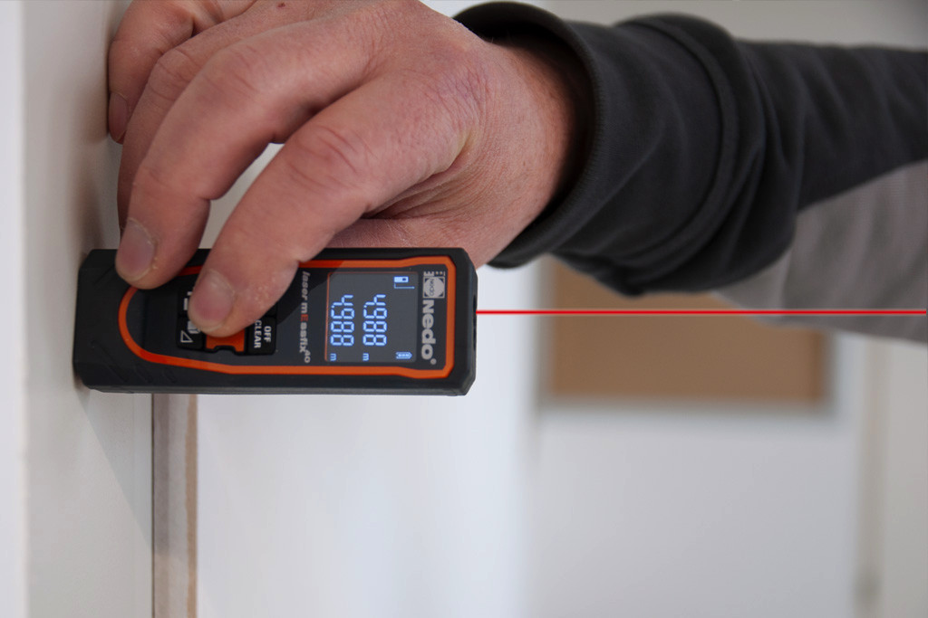 Mit einem Messbereich bis 40 m und einer Messgenauigkeit von ± 3,0 mm ist der laser mEssfix 40 der Laser-Entfernungsmesser für echte Profis. Extrem klein, handlich und äußerst robust. Messungen sind ab Gerätevorderkante oder ab der Gerätehinterkante möglich. Zahlreiche Messfunktionen helfen dabei, beim Aufmaß Zeit zu sparen.