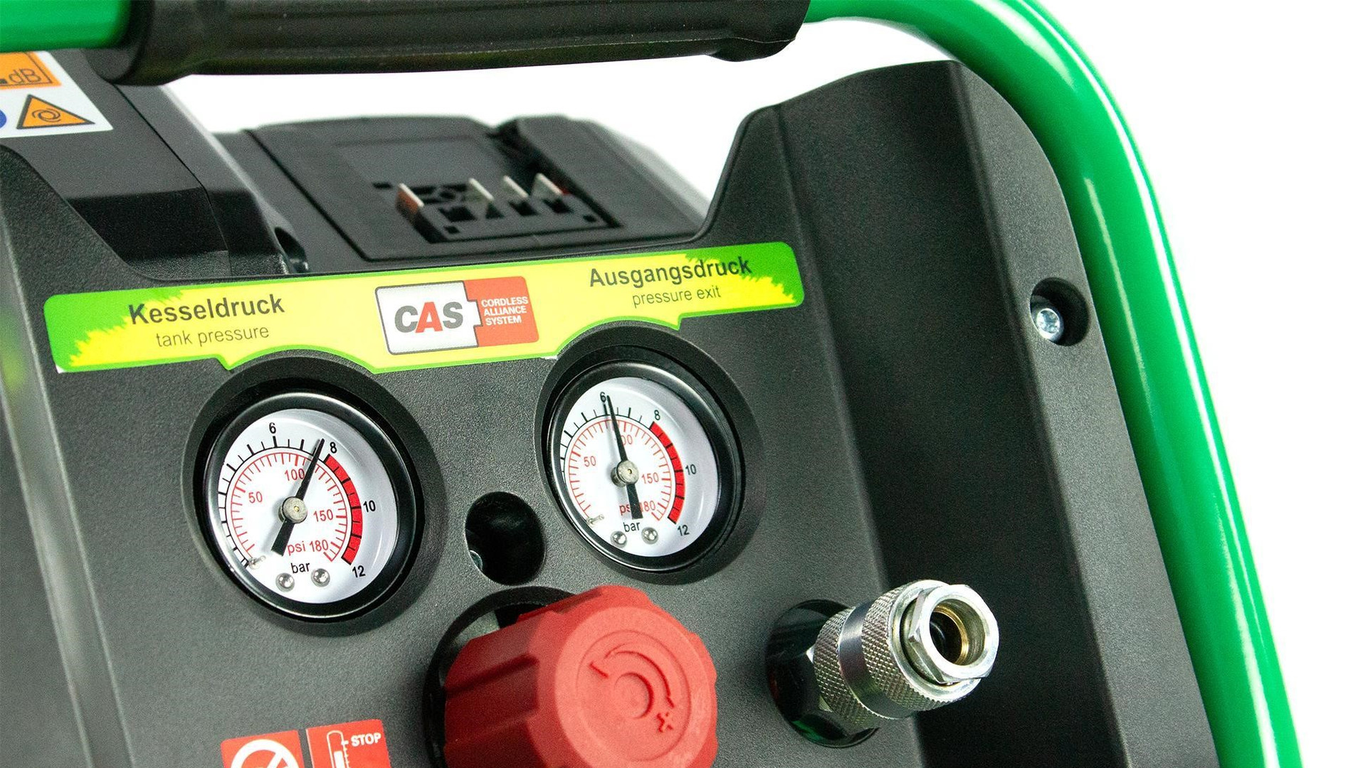 Druckluft für unterwegs: Der leichte und kompakte VITAS 100-AKKU 18-Volt-Akku-Kompressor mit Brushless-Motor und einem Maximaldruck von acht bar ist der perfekte Begleiter auf der Baustelle oder in der Werkstatt. Mit einem Gewicht von rund zehn Kilogramm und einer Größe von 330x310x390 Millimetern ist er einfach zu transportieren und steht mit seinen gummierten Standfüßen zu jeder Zeit sicher. In Kombination mit den PREBENA Druckluft-Werkzeugen ist der ölfreie Kolbenkompressor ideal für Arbeiten im Innenausbau, bei der Holzbearbeitung und im Sanitärbereich geeignet. Manometer für Kessel- und Ausgangsdruck und eine Universalkupplung für alle gängigen Anschlusssysteme garantieren eine einfache Bedienung.