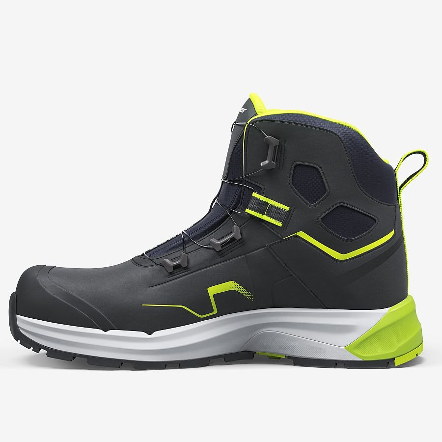 Der Sonar Mid ist ein vielseitiger Sicherheitsstiefel, der für schnelle Arbeiten entwickelt wurde. Mit seinem innovativen Athletic Wide Last passt er sich breiteren Füßen an, ohne sich sperrig anzufühlen. Eine EVA-Zwischensohle mit doppelter Dichte und eine teilweise recycelte OrthoLite®-Einlegesohle sorgen für Komfort und Stabilität, während die öl- und hitzebeständige Laufsohle soliden Halt bietet. Das Obermaterial aus CORDURA® mit atmungsaktivem Futter aus recyceltem Material verleiht dem Schuh Strapazierfähigkeit und Schutz, während das BOA® Fit System jederzeit für eine optimale Passform sorgt. NANO-Zehenkappe, weicher Nagelschutz und ESD-Funktion gemäß EN IEC 61340-5-1:2016.