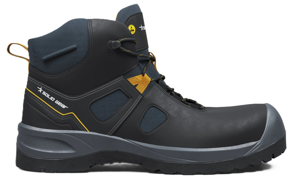 SOLID GEAR Sicherheits-Stiefel S3L Essence mid SG73202Moderne Sicherheitsschuhe bieten in allen Bereichen eingebauten Komfort. Das Obermaterial besteht aus LWG-Leder mit Nubuk-Finish und strapazierfähigem CORDURA®-Gewebe. Ein feuchtigkeitstransportierendes und recyceltes Futter sorgt für ein angenehmes Fußklima. Die dämpfende, atmungsaktive Einlegesohle aus offenzelligem PU-Schaum erhöht den Tragekomfort. Eine stabile PU-Zwischensohle mit integriertem Nylon-Schaft gewährleistet zusätzliche Stabilität. Die öl- und rutschfeste PU-Laufsohle bietet guten Grip auf verschiedenen Oberflächen. Diese Sicherheitsschuhe sind völlig metallfrei und verfügen über eine Glasfaser-Zehenkappe sowie Durchtrittschutz. ESD-Funktion gemäß EN IEC 61340-5-1:2016