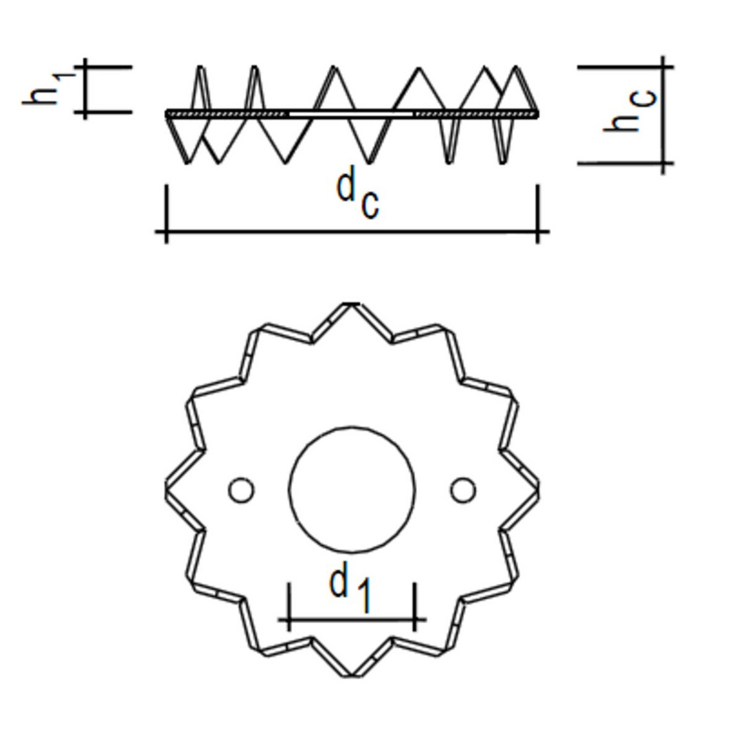 Zweiseitige Bulldog®-Scheibendübel mit Zähnen aus Stahlblech werden in Verbindung mit Bolzen angewendet.