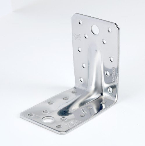Die ABR Winkelverbinder mit Rippe werden aus Edelstahl hergestellt und sind für tragende Holzkonstruktionen geeignet, bei denen eine höhere Anforderung an die Korrosionsbeständigkeit besteht. Sie sind besonders für Anschlüsse geeignet, bei denen große Kräfte übertragen werden müssen.