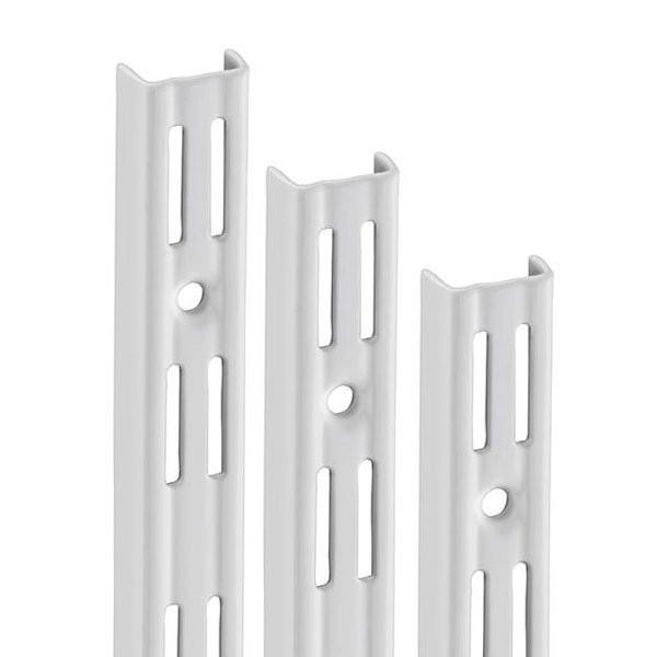 Die zweireihige Schiene ist die perfekte anpassungsfähige Aufbewahrungslösung für Garagen und Hauswirtschaftsräume. Sobald die Schienen an der Wand befestigt sind, können Halterungen und Regale jederzeit problemlos angepasst werden.