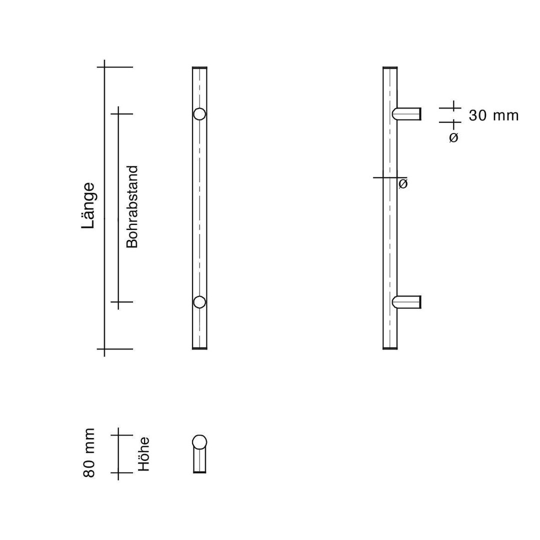 TOPFORM Montageset für schwarze Stoßgriffe - paarweise - für Türstärke 45 -65 mm