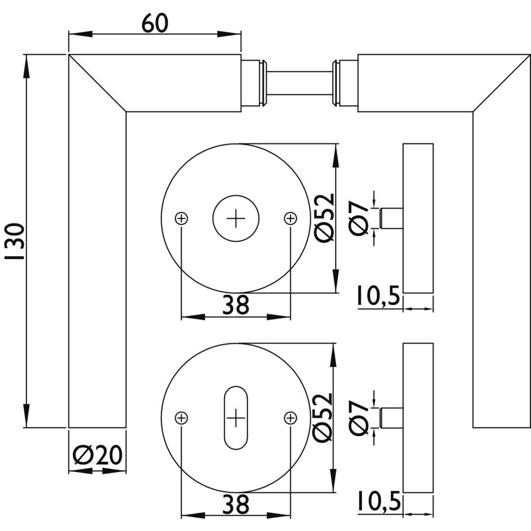 TOPFORM Zimmertür Wechsel-Rosettengarnitur PLATINA Edelstahl, PZW rechts