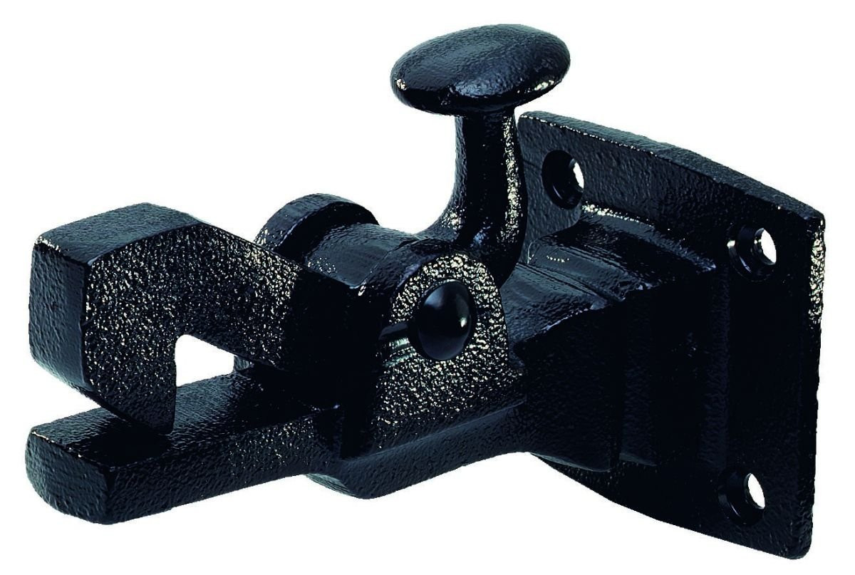 Das Tor wird durch Andrücken an den Feststeller automatisch arretiert. Ein leichter Druck auf den Fanghaken gibt das Tor wieder frei.