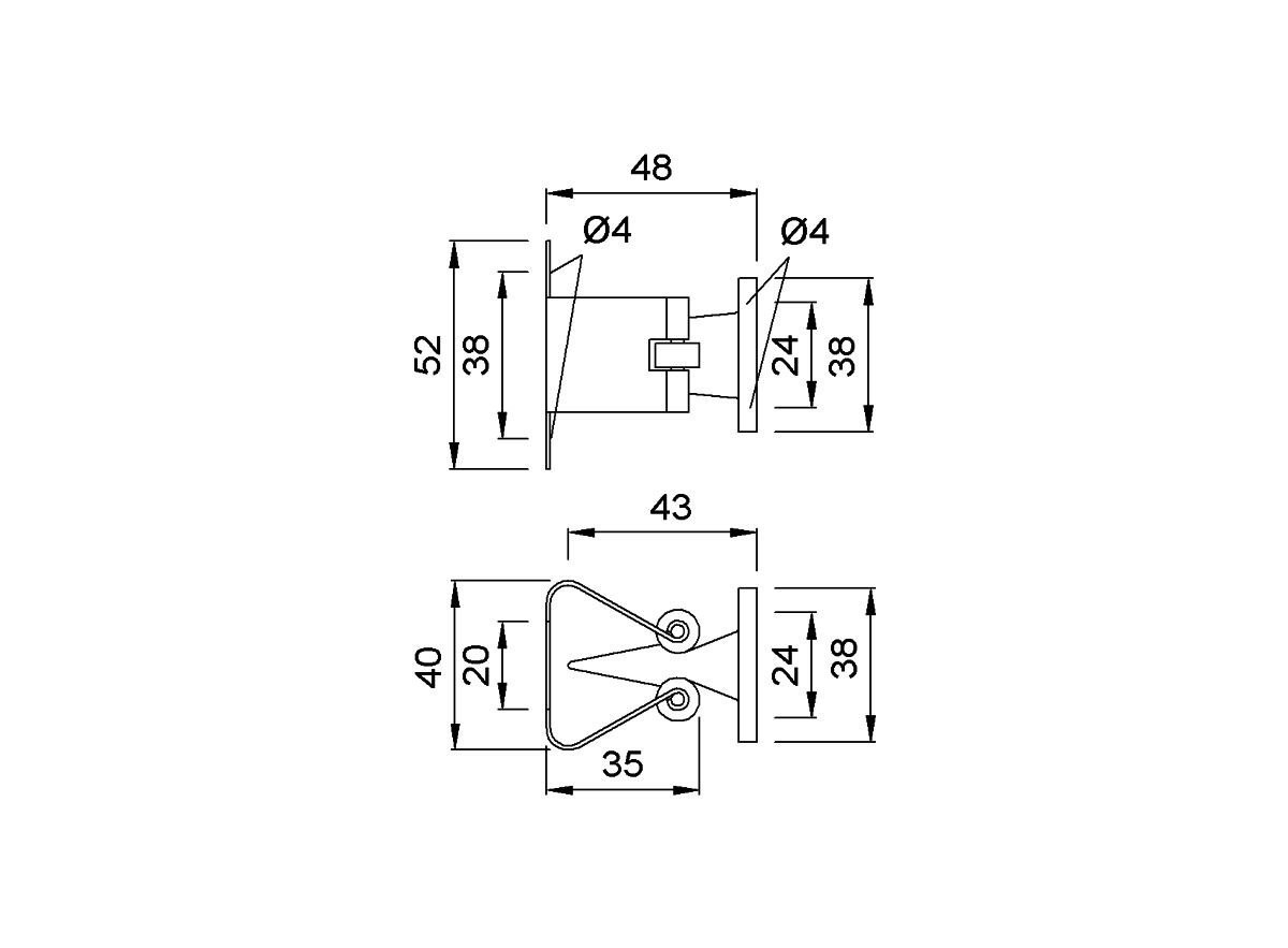 Der Feststeller wird bei größtmöglichem Abstand zum Türband an die Tür geschraubt, wobei die Schraublöcher senkrecht stehen sollten. An entsprechender Stelle wird der Kloben mittels Steindolle an der Wand befestigt.