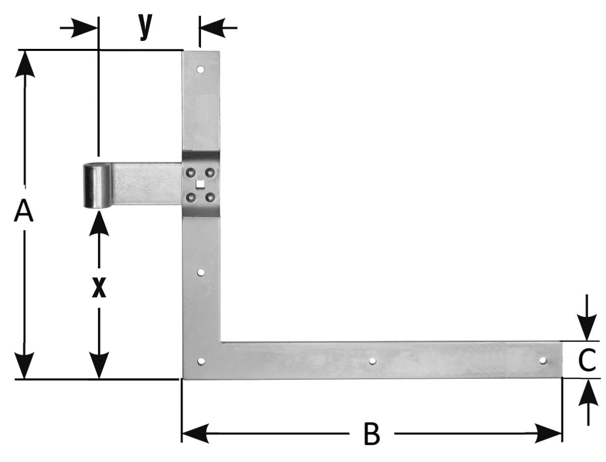 Haustürwinkelband Nr. 20/17 Oberfläche: feuerverz.; Maße: 16 x 400 x 600 mm; Lochung: 9/7 x 6 mm; Material: 40 x 5 ; VE: 1 Pa